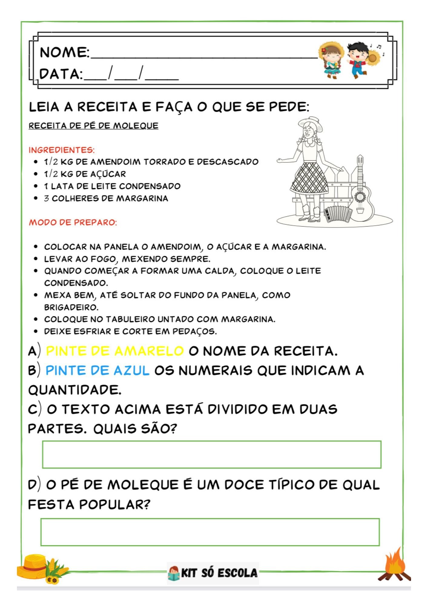 Apresentamos a você Atividades de Festa Junina, um recurso pedagógico que levará toda a magia dessa tradição brasileira para dentro da sua sala de aula. Prepare-se para mergulhar em um mundo de diversão, aprendizado e cultura!